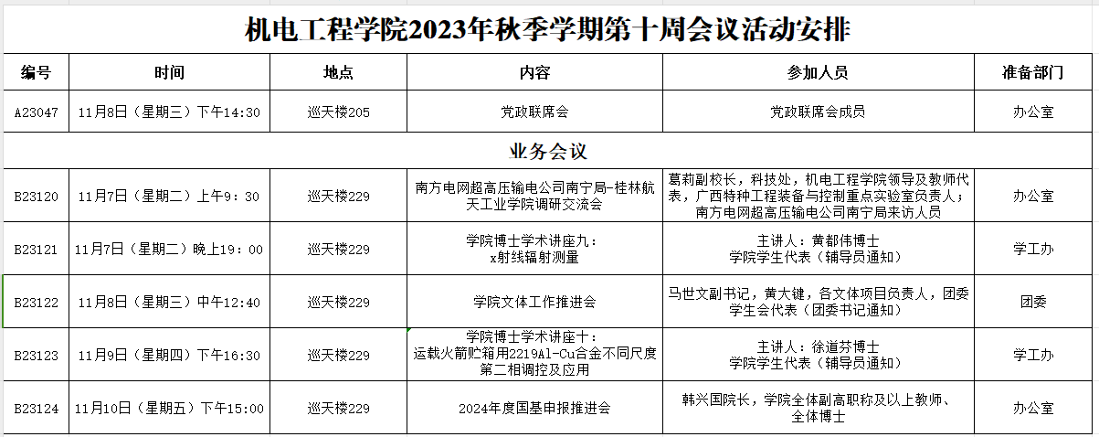 2023年秋季学期第十周会议活动安排