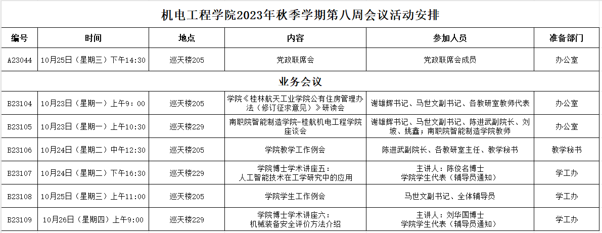 2023年秋季学期第八周会议活动安排