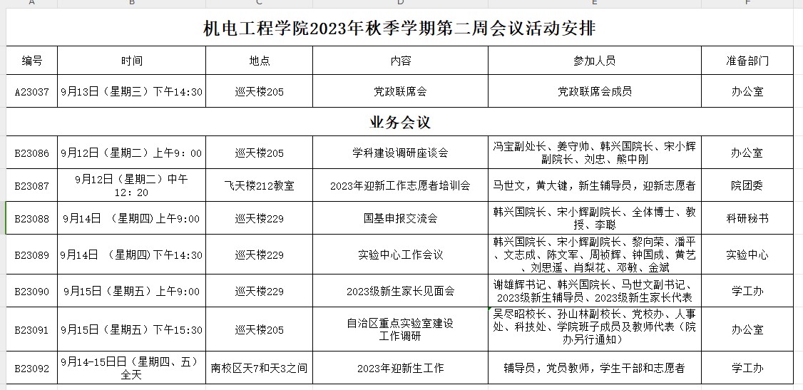 2023年秋季学期第二周会议活动安排