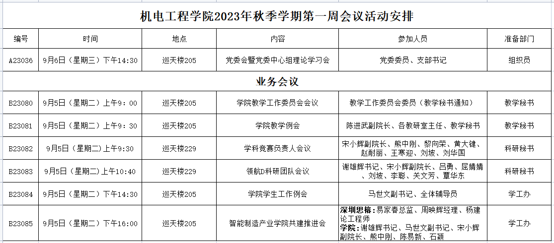 2023年秋季学期第一周会议活动安排
