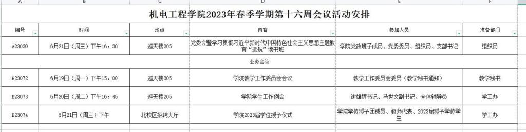 2023年春季学期第十六周会议活动安排