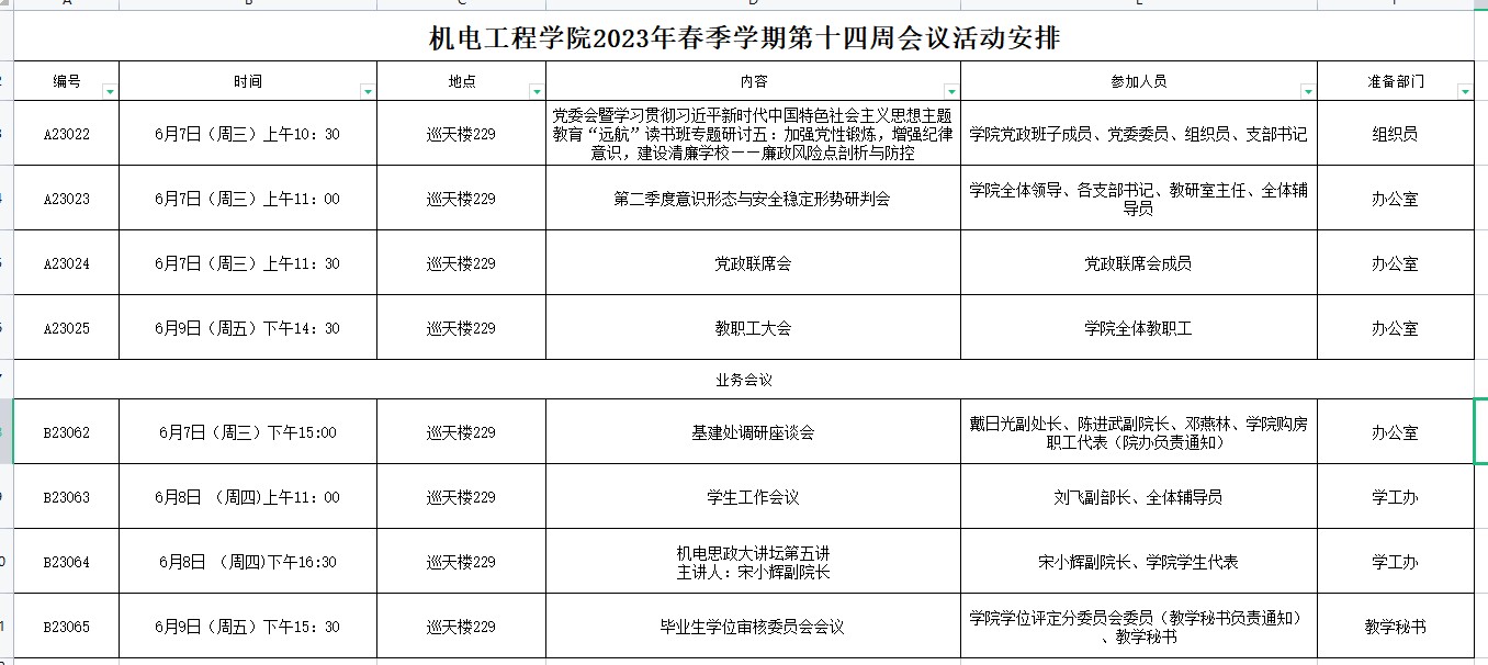 2023年春季学期第十四周会议活动安排