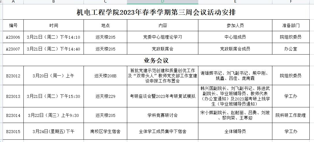 2023年春季学期第三周会议活动安排