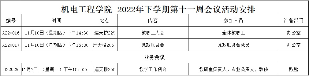 2022年下学期第十一周会议活动安排