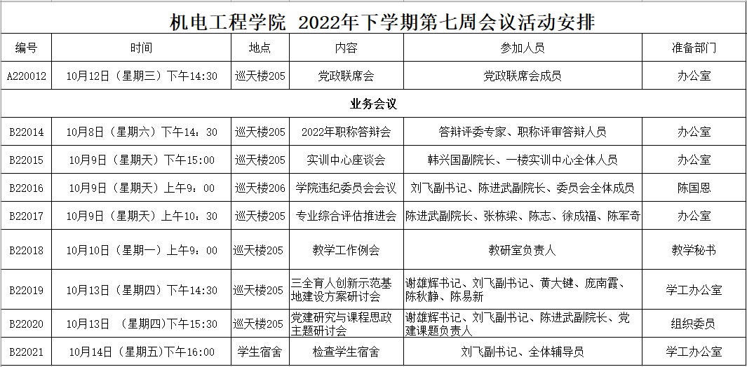 2022年下学期第七周会议活动安排