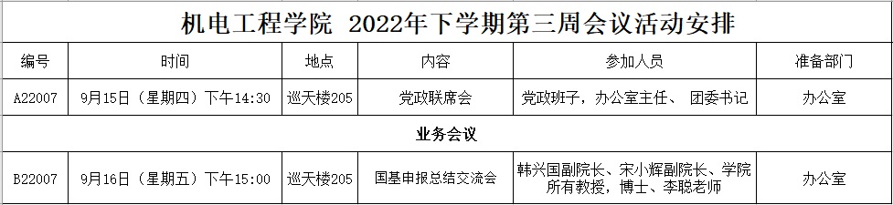 2022年下学期第三周会议活动安排