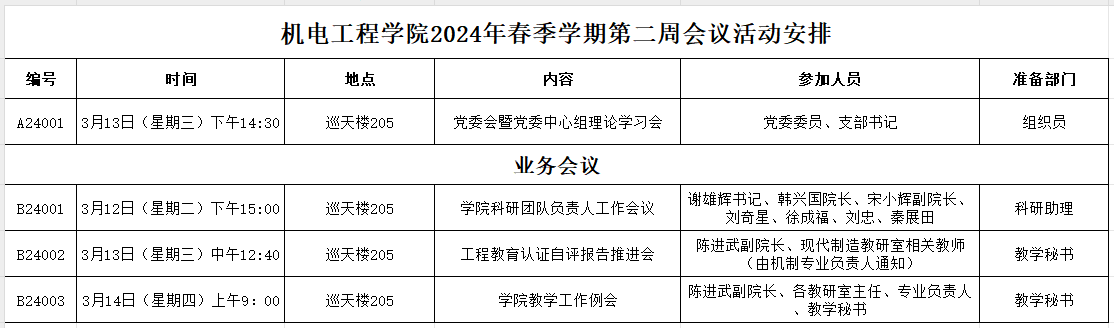 在线买世界杯平台2024年春季学期第二周会议活动安排