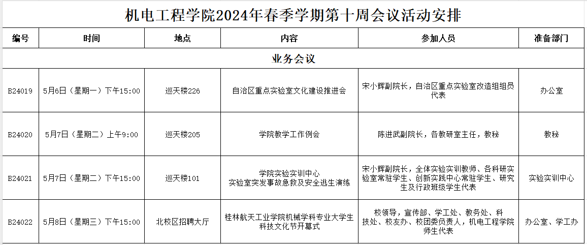 在线买世界杯平台2024年春季学期第十周会议活动安排