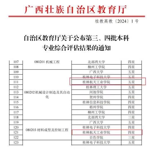 近日,自治区教育厅公布2023年广西普通高等学校本科专业综合评估第三、第四批评估结果。世界杯官网参评的机械设计制造及其自动化和材料成型及控制工程两个专业,顺利通过并分别获得五星级和四星级。