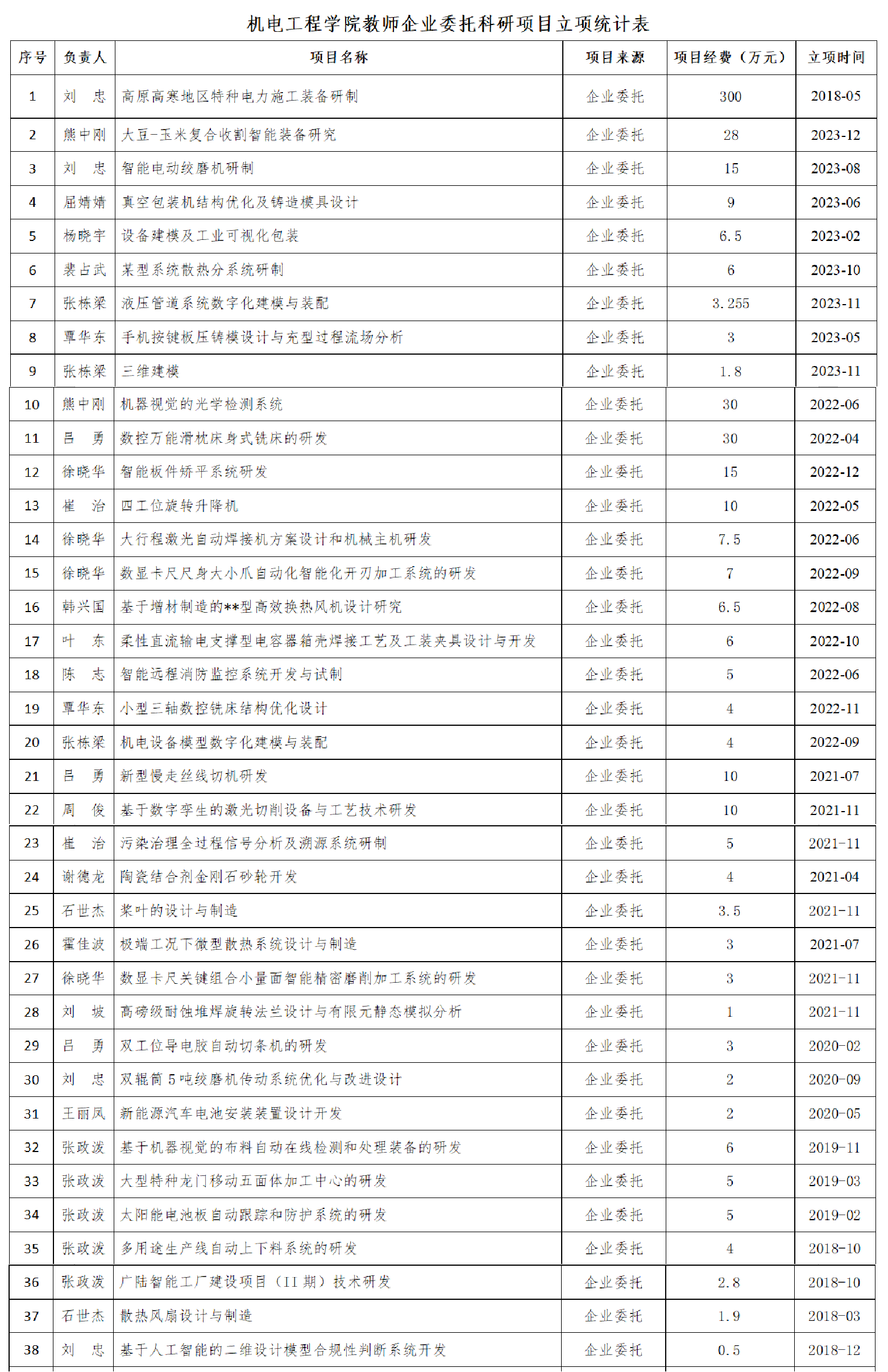 在线买世界杯平台教师企业委托科研项目立项统计表