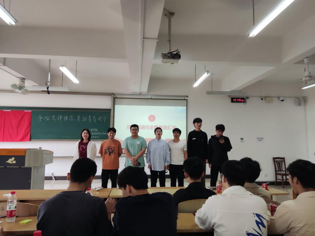 本次党日活动以“主题教育学习+思想感悟分享+节目汇报汇演”的形式展开。通过学习习近平总书记党的十八大以来对青年的谆谆嘱托,增强支部党员思想意识,提高青年党员自信心。期间,同志们观看了五四微电影《撑天》,对于影片内容大家纷纷发表感悟,“未来属于青年”、“丰富自我,不负青春不负人民”、“青年党员理应奋斗,承担时代重任”,一字一句掷地有声。同志们定将珍惜当下,不负韶华。最后,支部党员分小组进行节目汇演,一首首红歌唱响青春朝气,一句句诗词朗诵大气磅礴。