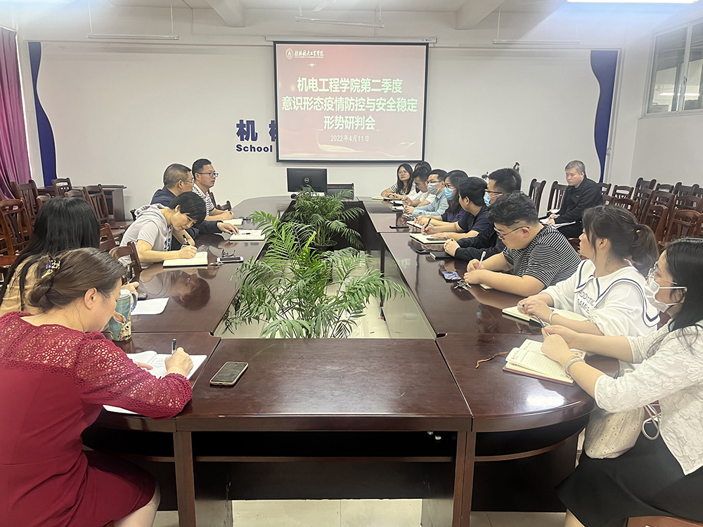4月11日,在线买世界杯平台召开2022年第二季度意识形态疫情防控与安全稳定形势研判会议。学院全体领导、各支部书记、教研室负责人,以及全体辅导员参与会议。会议由学院党委书记谢雄辉主持。
