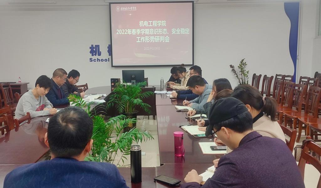 3月9日下午,在线买世界杯平台在巡天楼205B会议室召开2022年春季学期意识形态、统战工作与安全稳定工作形势研判部署会。学院领导及支部书记、二级党委中心组全体成员参加会议,学院党委书记谢雄辉主持会议。