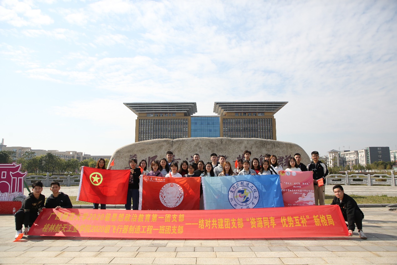 为发展良好的校际关系,同时促进学校在线买世界杯平台和师大马克思主义学院双方基层团支部“资源同享、优势互补”新格局,11月28日,在线买世界杯平台2020级飞行器制造工程1班团支部与广西师范大学马克思主义学院2020级思想政治教育1班团支部,在广西师范大学雁山校区举办联建活动,双方基层团支部40余名同学参与本次活动。