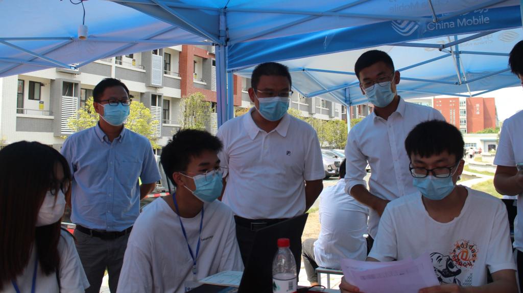 迎着朝阳,新生们在党员志愿服务队的指引帮助下,有序入校并办理了入学的必要手续。在迎新过程中,全体党员高效办事,待人亲切,深刻践行学习习近平总书记学党史,悟思想,办实事的讲话精神,引领家长们来到党员志愿服务站休息并积极地回答萌新们提出的问题。本次迎新工作受到学院领导的高度重视。机电工程学院党总支书记谢雄辉、副书记刘飞、团委书记黄大键等莅临现场指导迎新工作,并对党员志愿服务队的精神风貌和工作状态表示了肯定。