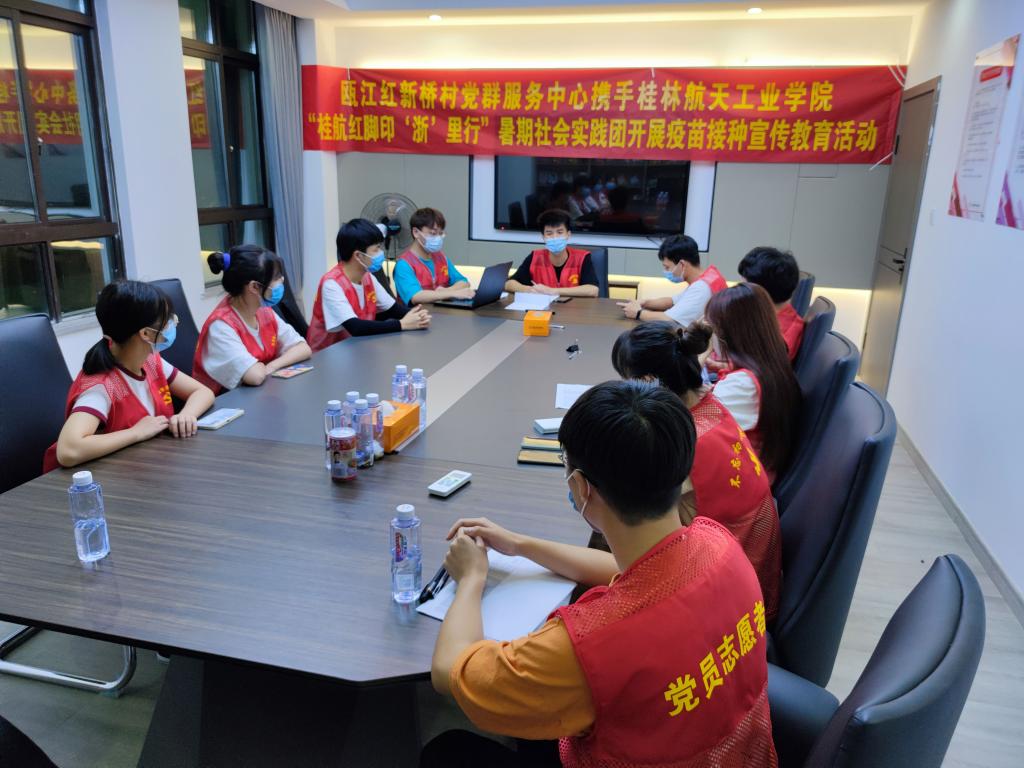 “桂航红脚印‘浙’里行”暑期社会实践团携手灵溪镇瓯江红新桥村党群服务中心开展疫苗接种宣传活动