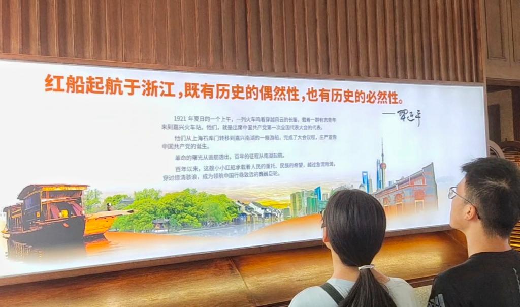 之后,实践团成员还重点参观了“红船精神”展厅,集中学习了 “开天辟地、敢为人先的首创精神,坚定理想、百折不挠的奋斗精神,立党为公、忠诚为民的奉献精神”的深刻内涵。