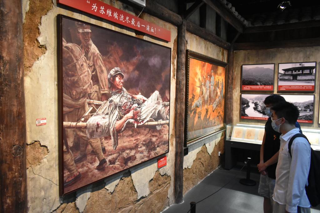 在实践学习的过程中,解说员专业、极富情感的为同学们进行讲述。红军战士物品、背景、事件、壁画、伤亡数据名单都让实践队员深切感受到湘江战役的残酷,红军将士视死如归,向死而生,一往无前,敢于压倒一切困难的精神,使实践团队成员震撼、动容、发奋、自强。