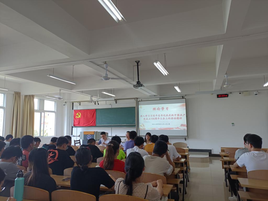 为坚持在学习教育中汲取精神力量的理念,7月7日上午,在线买世界杯平台学生第二党支部在飞天楼207教室召开理论学习会议,深入学习习近平总书记在庆祝中国共产党成立100周年大会上的讲话。全体学生党员悉数参加。