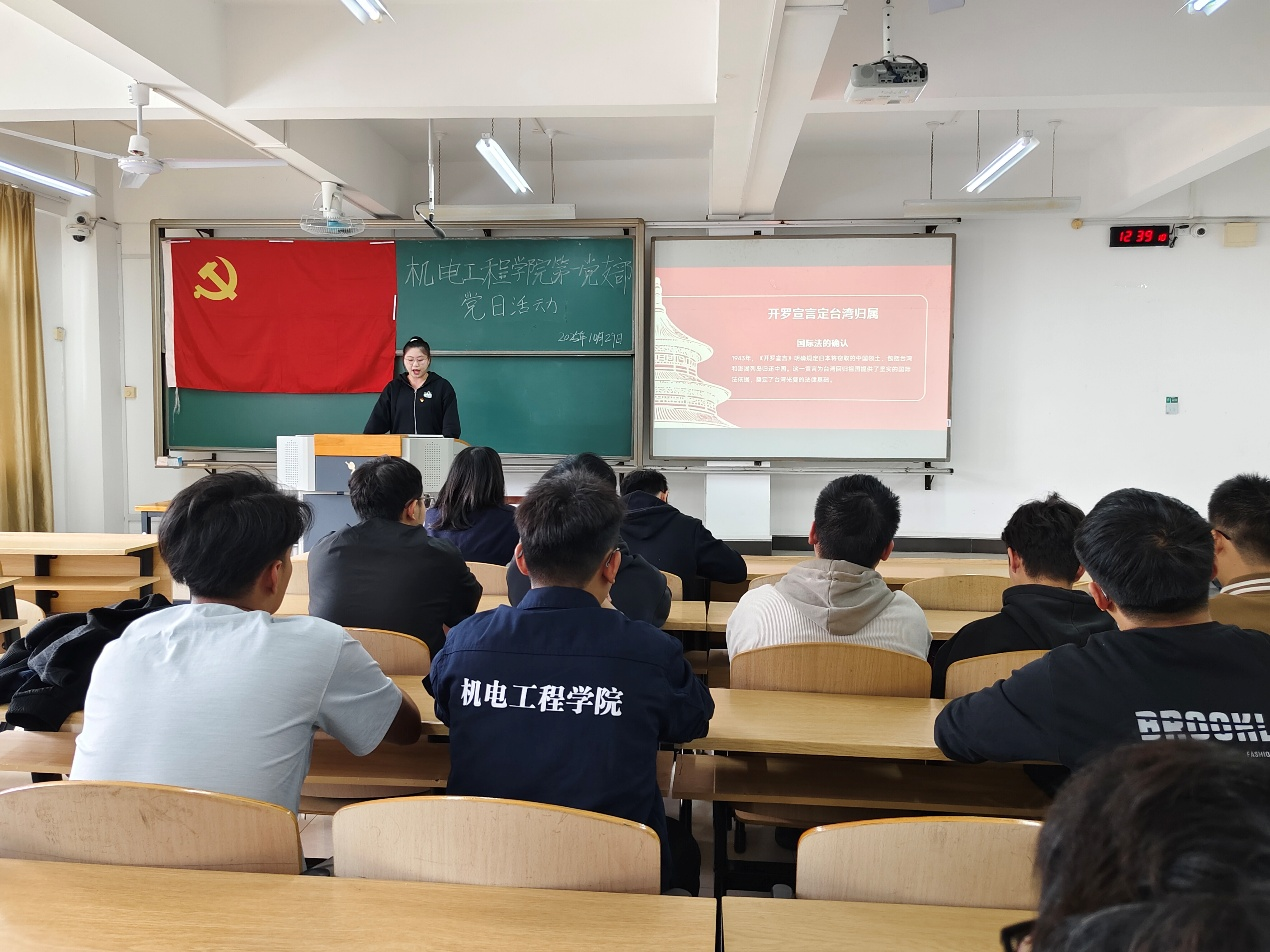 为深入学习贯彻习近平新时代中国特色社会主义思想,落实立德树人根本任务,传承红色基因、厚植家国情怀,引导青年党员深刻认识台湾光复的历史意义,增强维护国家主权与领土完整的责任感和使命感,10月29日,在线买世界杯平台学生第一党支部在南校区飞天楼207,以“从抗战胜利到国家统一——传承红色基因”为主题,开展台湾光复历史专题学习党日活动。支部全体党员参会。