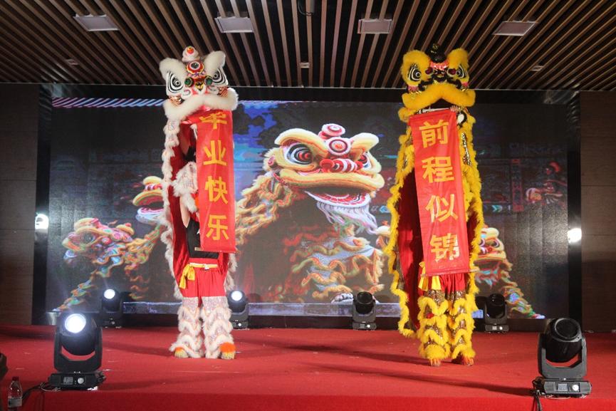 整场晚会形式多样,并且进行了线上的同步直播。晚会期间,一个个异彩纷呈的节目,将晚会的氛围推向了高潮。其中,传统文化节目《舞狮》在舞台上大放光彩,他们凭借着精湛的技术,巧妙的互动,赢得了观众席的声声喝彩。师生们表演的合唱、朗诵和舞蹈都充满着艺术气息,亮点不断。一首歌曲《友情岁月》让我们知道了友情是一枚青橄榄,开始品尝总是涩涩的,时间久了才能品出其甘甜;杯子歌《稻香》的表演者们用那轻快的动作告诉我们在青春追梦的路上,别给自己太大压力,要适当的给自己放个假;结尾的彩蛋《再见》更是出乎意料,给观众们了一个惊喜的同时也蕴含了对青春的诠释。