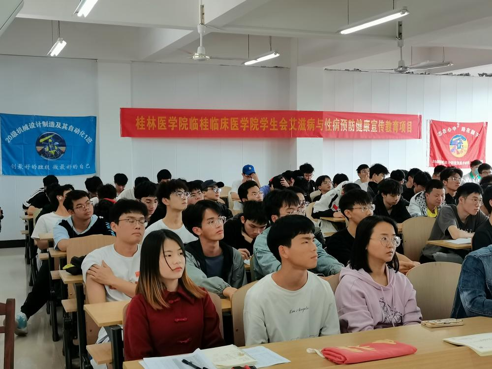 为提高大学生知艾防艾意识,遏制艾滋病在青年群体中的传播和流行,5月12日下午,在线买世界杯平台2020级机械设计制造及其自动化1班团支部携手桂林医学院临桂临床医学院学生会在飞天楼215教室开展艾滋病与性病预防健康宣传教育活动。学工部(处)副部长刘飞、在线买世界杯平台辅导员石颖、陈国恩参与此次活动。
