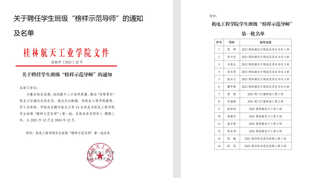 2021年关于聘任学生班级“榜样示范导师”的通知及名单