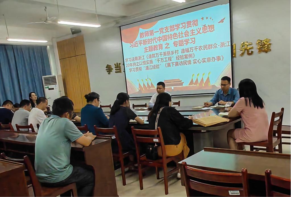 7月3日,教师第一党支部在学院巡天楼229会议室召开了学习贯彻习近平新时代中国特色社会主义思想主题教育第四次专题学习活动,本次讨论专题是“学习运用习近平《造就万千美丽乡村 造福万千农民群众——浙江20年持之以恒实施“千万工程”经验案例》”和“学习贯彻“浦江经验”真下真访民情 实心实意办事”。