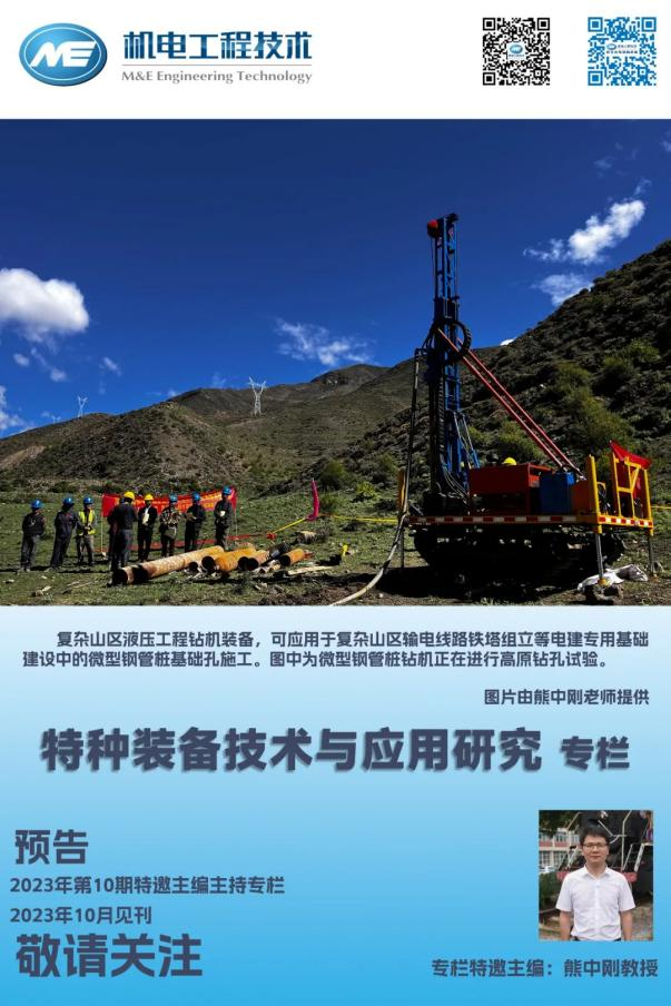 2023年7月,在线买世界杯平台教师熊中刚教授(博士)受邀担任机电工程技术期刊特邀专栏主编,并联合桂林电子科技大学、重庆文理学院、国网西藏电力有限公司、四川电力设计咨询有限责任公司等单位主持完成了“特种装备技术与应用研究”专栏组稿工作,旨在重点报道该技术领域的最新进展和发展趋势,分享最新学术研究和技术研发成果,这是世界杯官网获批广西特种工程装备与控制重点实验室以来,该实验平台教师首次作为学术期刊特邀专栏主编。
