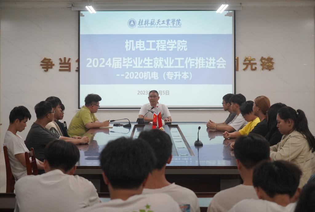 马世文和陈进武还提到了学院高度重视毕业生就业工作,毕业生们要积极将自己的择业目标与老师进行交流,便于学院给予就业指导。同时希望大家学会总结得与失,在实践中学经验与方法,不断提升自身的综合素质。他们还分享了优秀校友的事迹,告诫毕业生应保持吃苦耐劳的精神,端正就业态度,发挥好桂航人“肯吃苦”的良好品质。