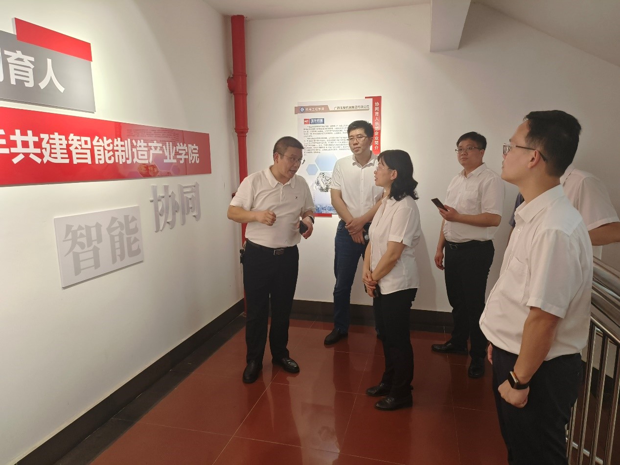 为增加校企之间的沟通交流,5月31日,广西玉柴机器集团党委副书记关敏一行莅临在线买世界杯平台参观调研。学院党委书记谢雄辉,副院长(主持行政工作)韩兴国全程陪同参观交流。