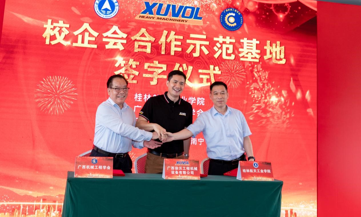 本次揭牌成立的校企会合作示范基地是在广西科协、广西东盟经开区指导支持下由在线买世界杯平台、广西机械工程学会、广西徐沃工程机械设备有限公司共同发起的校企合作创新平台,旨在以“校企会”多元化示范合作为基础,加强产学研的融合深度,提升高校与企业的科技创新能力,联合开展高端特种工程装备“产学研施用”一体化模式下的创新探索与成果转化,将产学研成果应用于广西及国家重大工程。