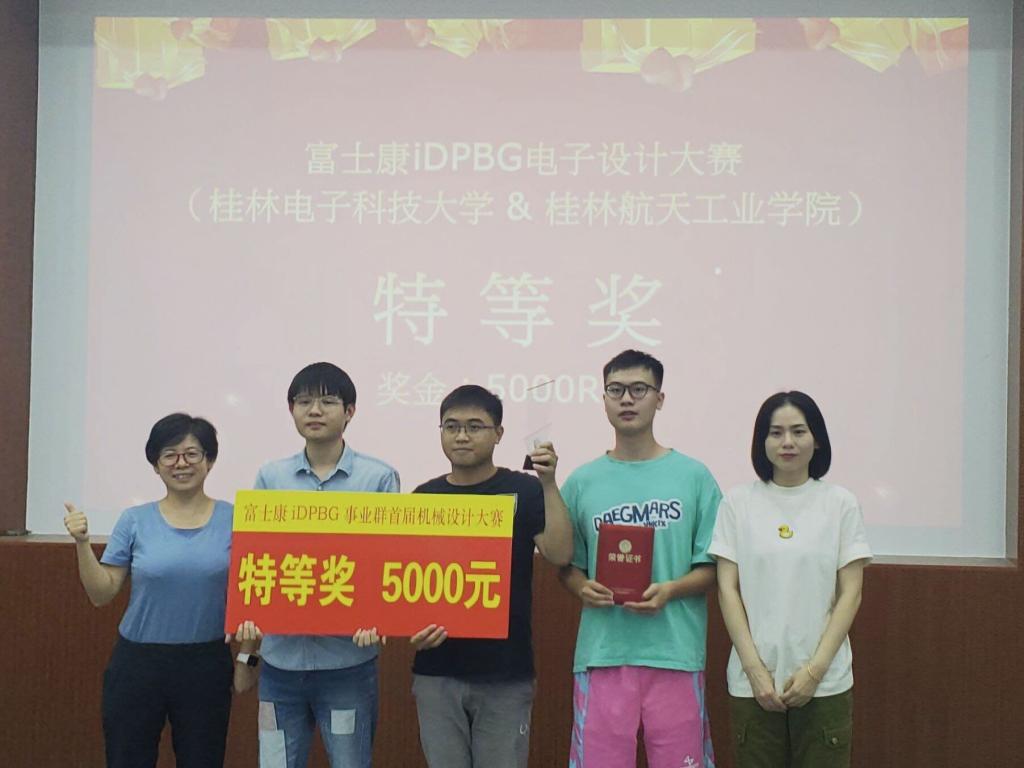 9月29日,富士康科技集团iDPBG事业群首届电子&机械设计竞赛总决赛暨颁奖仪式在桂林电子科技大学花江校区圆满举行。在本次活动中,世界杯官网400多学生组成的147支参赛小组参与比赛,与桂林电子科技大学学子同台竞技。其中,世界杯官网学子荣获特等奖2组,一等奖1组,二等奖4组,三等奖7组。