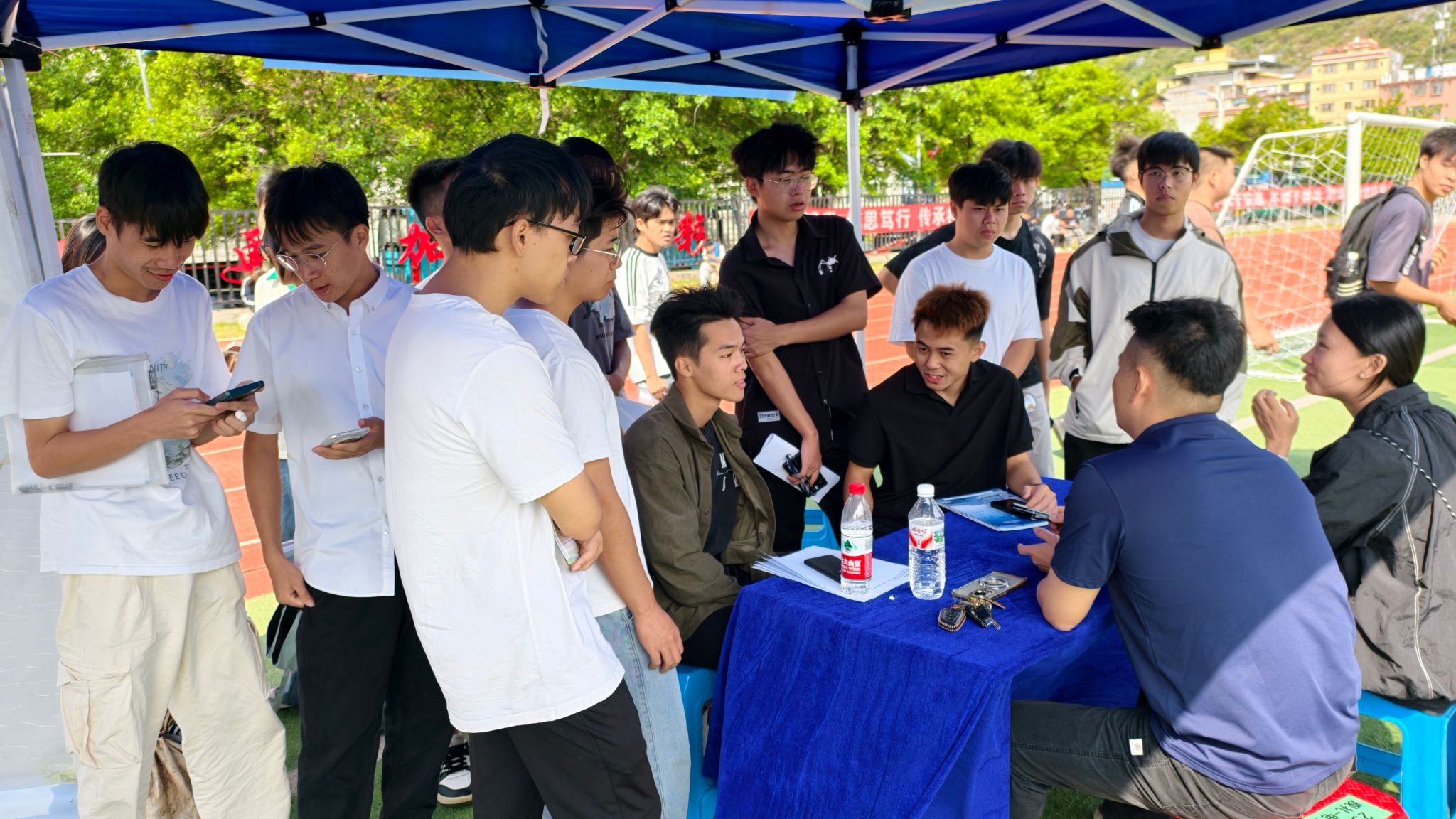 在学校秋季大型双选会期间,作为退伍军人的党支部书记陈老师,在得知学校武装部因工作繁忙无法安排专人负责征兵咨询点后,主动请缨,利用自身丰富的军旅经验,现场为有志参军的学生提供专业指导。他不仅详细解读了国家最新征兵政策、入伍流程及退役后的发展路径,还结合自身经历,生动讲述了军营生活的点点滴滴。咨询点前,不少学生认真聆听、踊跃提问,现场气氛热烈而有序。